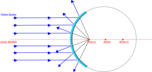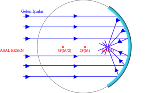 Tümsek yüzeye gönderilen paralel ışık demetinin ayna arkasındaki bir noktadan çıkıyormuş gibi birbirinden uzaklaşır.