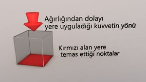 - Yüzeye gelen dik kuvveti oluşturan cismin ağırlığıdır bu nedenle;