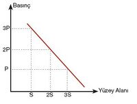 Katılarda basınç yüzey alanı ile ters orantılıdır. Yüzey alanı artarsa basınç azalır ya da yüzey alanı azalırsa basınç artar.