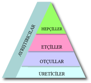 | Enerji azalır. ( Her basamakta yüzde 10'luk bir ejerji aktarimı olur.) |