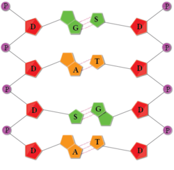1 Bir DNA zincirinde Adenin, Timin, Guanin ve Sitozin belirli kurallar çerçevesinde bağ kurabilmektedirler. DNA'nın iki zincirini birbirine bağlayan bu bağlar organik bazın çeşidine göre 2'li yada 3'lü olabilmektedir.