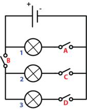 | D) A ve B anahtarı kapalı ise diğer anahtarlar açık ise 1. ampul yanar. |