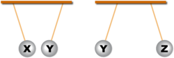 Yukarıda X ile Y, Y ile Z arasındaki itme ve çekme etkileri gözlemleniyor.