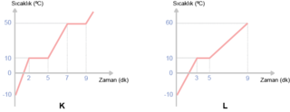 1 Aşağıdaki K ve L kaplarında bulunan sıvılar 20oC 'den 50oC 'ye özdeş ısıtıcılar kullanarak çıkarılıyor.