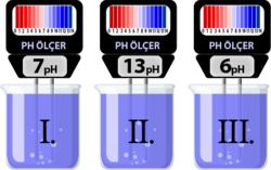 Aşağıda 3 ayrı çözelti PH ölçer ile ölçülüyor.