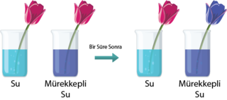 Öğretmen dersiyle alakalı olarak iki gülü ılık ve aydınlık bir ortamda birini su olan kaba, birini ise mürekkepli su olan bir kaba yerleştirip bırakıyor. Ertesi gün geldiklerinde güllerde şekildeki gibi bir değişimin olduğu görülüyor.