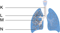| Yutak | Karbondioksit | Su Buharı | Bronş | Oksijen | Kalbin | Gevşer | Alveol | Diyafram | Gırtlak | Kasılır | Kıllar |
