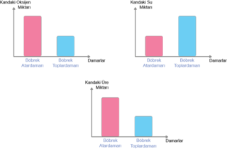 Bu damarlardan geçen kandaki oksijen, su ve üre miktarını aşağıdaki gibi grafik olarak gösterilmiştir.
